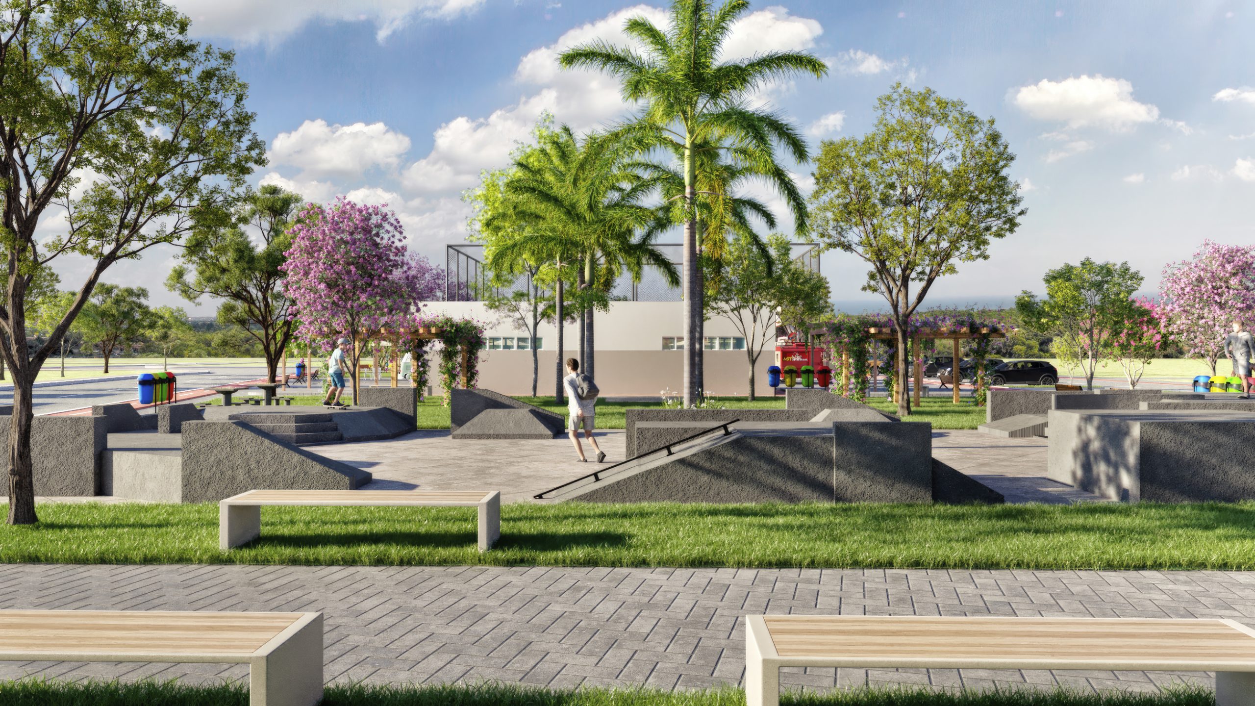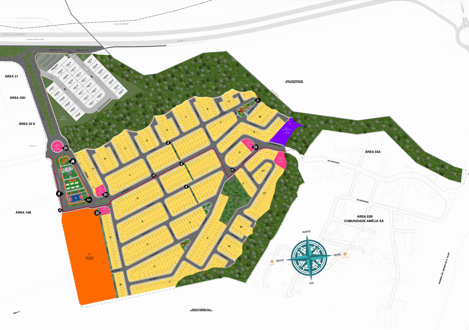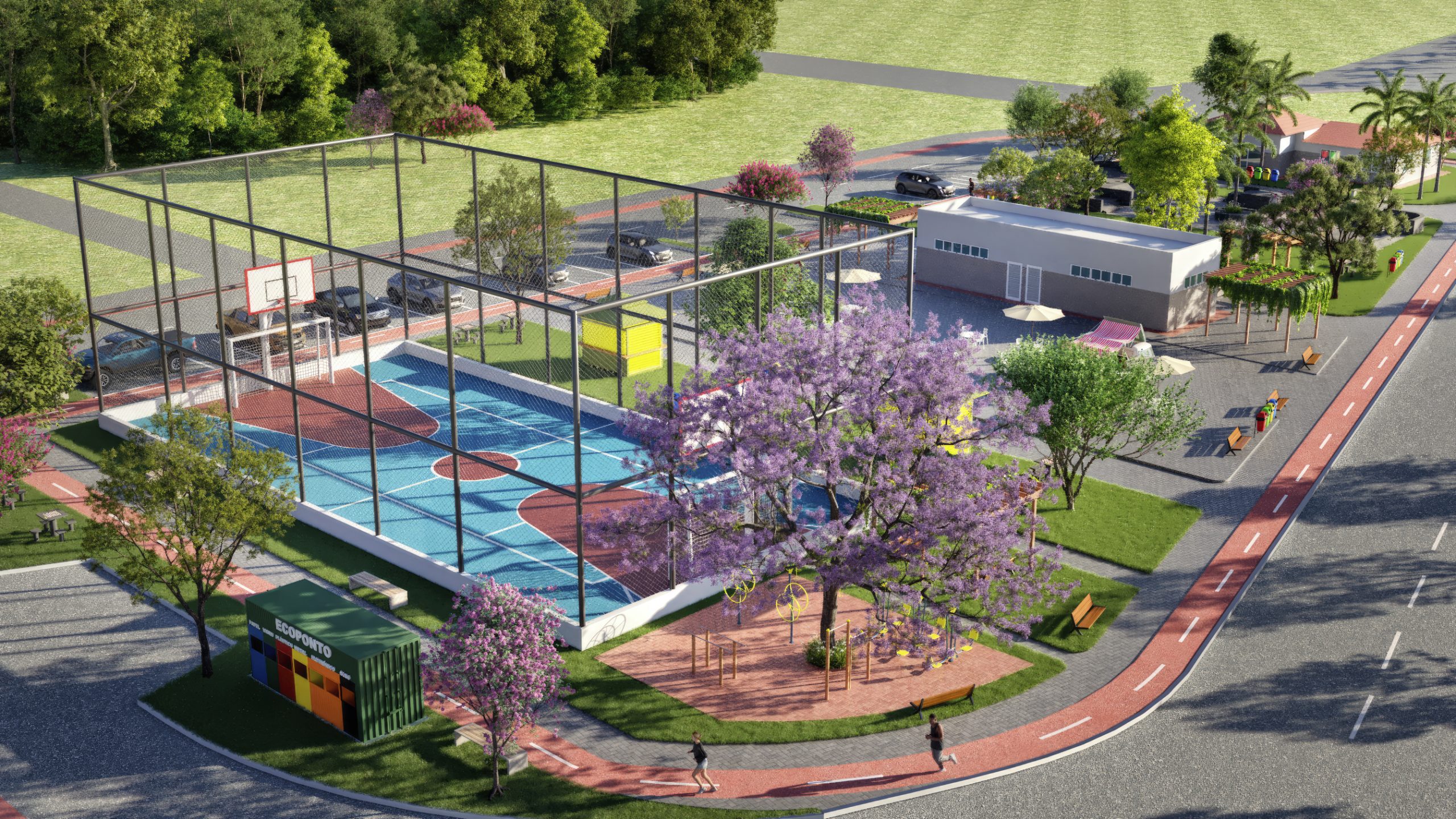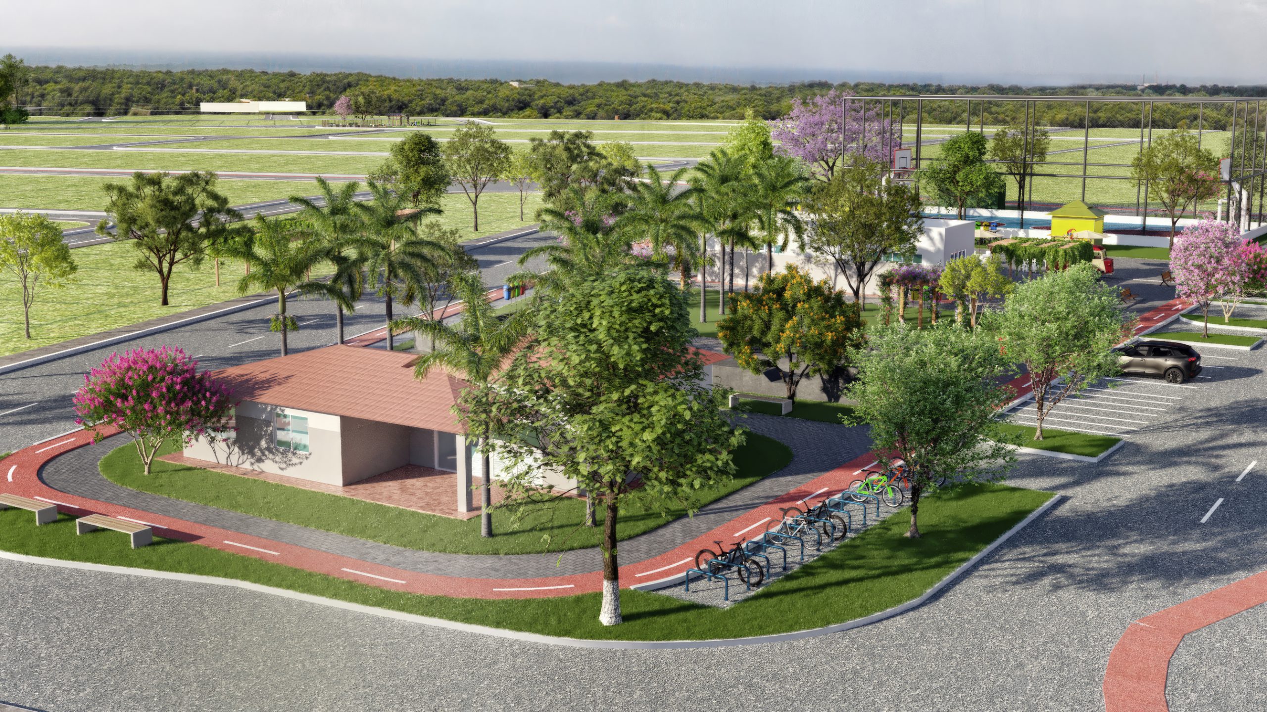 São lotes a partir de 130m². O empreendimento contará com vários itens de lazer: praças de convivência, quadra poliesportiva, playground infantil, pista de ciclismo, área para feira e muito mais!